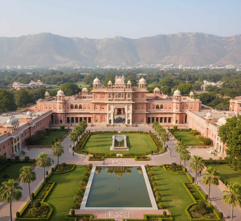 Inside the gate lay a huge, beautifully maintained garden. Different kinds of flowers and plants filled the space, their colours glowing softly under the morning light. Small stone pathways curved through the garden, leading towards various parts of the palace. Each path seemed to tell its own story, guiding visitors deeper into the royal grounds. Near the palace’s main entrance, too, a number of guards stood watch, their presence adding to the dignity and security of the place. The entire scene looked peaceful, grand, and alive with the freshness of a new day…